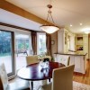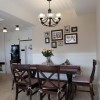 本套餐厅装饰中空间内的整体色调搭配主要是以白色为主,石膏板吊顶的设计采用了平顶式的造型,中间安装了一盏黑色的铁艺吊灯,精美的造型设计更是成为了空间装饰的一大亮点,为整个装饰增添了美感。