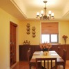 美式风格的设计可以带给人们一种自由、浪漫的感觉,但我们也可以在空间内部感受到文化气息,贵气加上大气的随意搭配可以使整个空间装饰都显得十分时尚,更是使空间充满了自由气息。 本套餐厅装饰中空间内的色调主要是以白色为主,平顶式的石膏板吊顶在四周做了夹层的设计并在中间安装了白色的灯带,可以将中间的黑色铁艺吊灯衬托的更加别致,也将下方的实木餐桌衬托的更加典雅、精美。 更多»推荐家装效果图