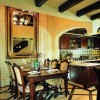 本套餐厅装饰中空间内的色调主要是以白色为主,平顶式的石膏板吊顶在四周做了夹层的设计并在中间安装了白色的灯带,可以将中间的黑色铁艺吊灯衬托的更加别致,也将下方的实木餐桌衬托的更加典雅、精美。
