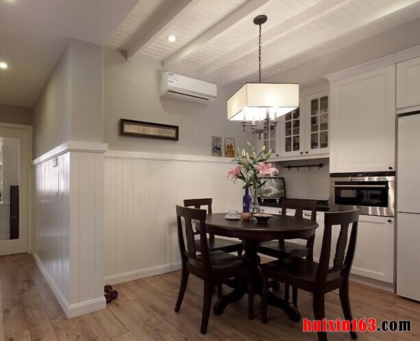 美式风格的设计可以带给人们一种自由、浪漫的感觉,但我们也可以在空间内部感受到文化气息,贵气加上大气的随意搭配可以使整个空间装饰都显得十分时尚,更是使空间充满了自由气息。 本套餐厅装饰中空间内的色调主要是以白色为主,平顶式的石膏板吊顶在四周做了夹层的设计并在中间安装了白色的灯带,可以将中间的黑色铁艺吊灯衬托的更加别致,也将下方的实木餐桌衬托的更加典雅、精美。 更多»推荐家装效果图