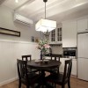 本套餐厅装饰中空间内的主色调是以白色为主,空间内的石膏板吊顶中间做了简单的造型设计,并在中间安装了一盏黑色的铁艺吊灯,在白色背景的衬托下可以显得十分精美,也将下方的实木餐桌衬托的更加具有古典气息。