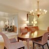 本套餐厅装饰中空间内的主色彩是以白色为主,石膏板吊顶的造型比较别致,可以将中间的水晶吊灯衬托的更加精美,也将造型彰显的更加别致,下方的黑色实木餐桌搭配上红色的布艺座椅,更加凸显了质感与时尚设计感。