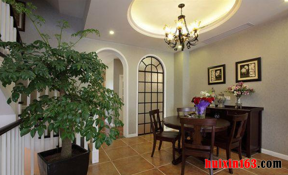 美式风格的装饰带给我们的第一感觉应该是清新脱俗的,现下在我们身边常见的美式风格装饰并不是完全延续美式风格设计,在此基础上也会添加一些现代装饰元素,使整体的装饰可以显得十分时尚。 本套餐厅装饰中空间内的色调主要是以白色为主,平顶式的石膏板吊顶中间安装了一款黑色铁艺吊灯,圆形的造型设计,在平顶式吊顶的衬托下可以显得更加精美、别致,也将白色的皮质座椅衬托的更加华贵。 更多»推荐家装效果图