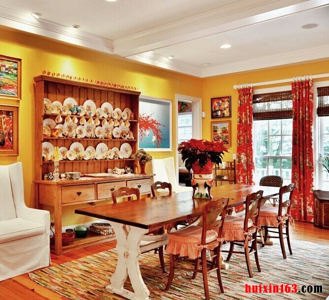 美式风格的家具设计主要会采用比较流畅的线条以及对称的曲线来装饰布局,空间内的装饰会比较通透,从而使整个空间都显得十分宽敞明亮,空间内的装饰物品会比较具有文艺气息,从而凸显出美式风格的装饰亮点。 本套餐厅装饰中空间内的色调搭配比较柔和,同时也可以带给人们一种惊艳的感觉,一款实木材质的餐桌搭配上木质座椅可以彰显出一种时尚的设计感,同时也可以彰显出一种自然气息。 更多»推荐家装效果图