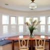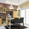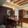 本套餐厅装饰中空间内的色调搭配比较柔和,同时也可以带给人们一种惊艳的感觉,一款实木材质的餐桌搭配上木质座椅可以彰显出一种时尚的设计感,同时也可以彰显出一种自然气息。