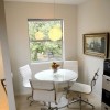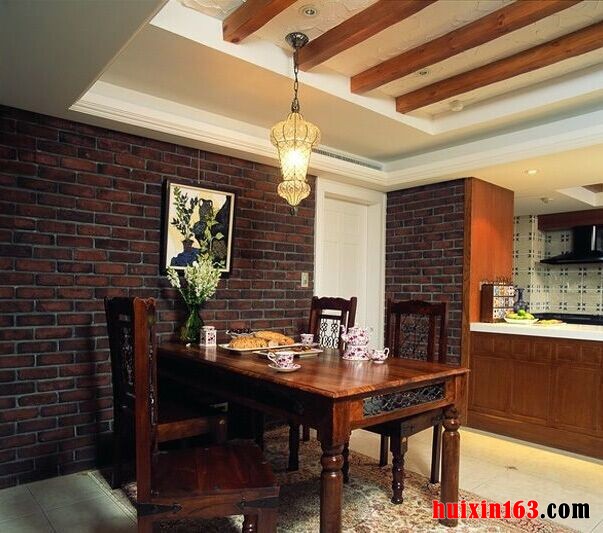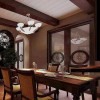本套餐厅装饰中空间内的色调搭配比较柔和,同时也可以带给人们一种惊艳的感觉,一款实木材质的餐桌搭配上木质座椅可以彰显出一种时尚的设计感,同时也可以彰显出一种自然气息。