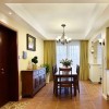 本套餐厅装饰中空间内的色调搭配比较柔和,同时也可以带给人们一种惊艳的感觉,一款实木材质的餐桌搭配上木质座椅可以彰显出一种时尚的设计感,同时也可以彰显出一种自然气息。