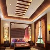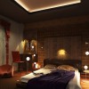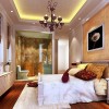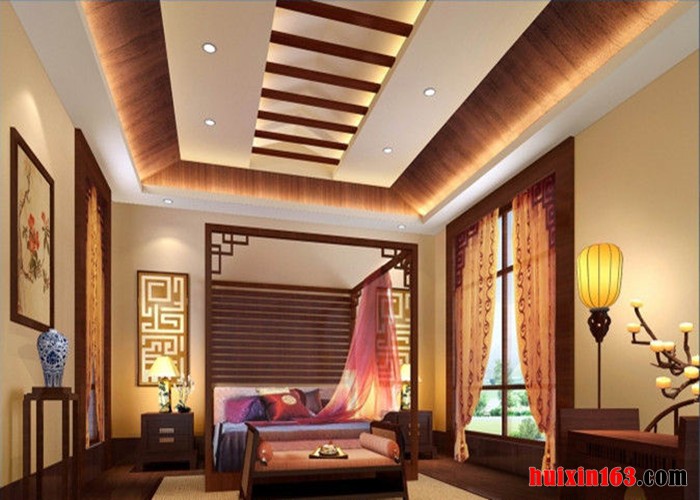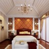 卧室主旨色彩:色彩应以统一、和谐、淡雅为宜,对局部的原色搭配应慎重,稳重的色调较受欢迎,本例主要运用到木材质,张显简朴大方之气。整个空间提取了传统古典家居韵味,又融入了现代生活符号,床上抱枕打破了空间的安静。充满中国韵味的剪纸使风格的体现的淋淋尽致。