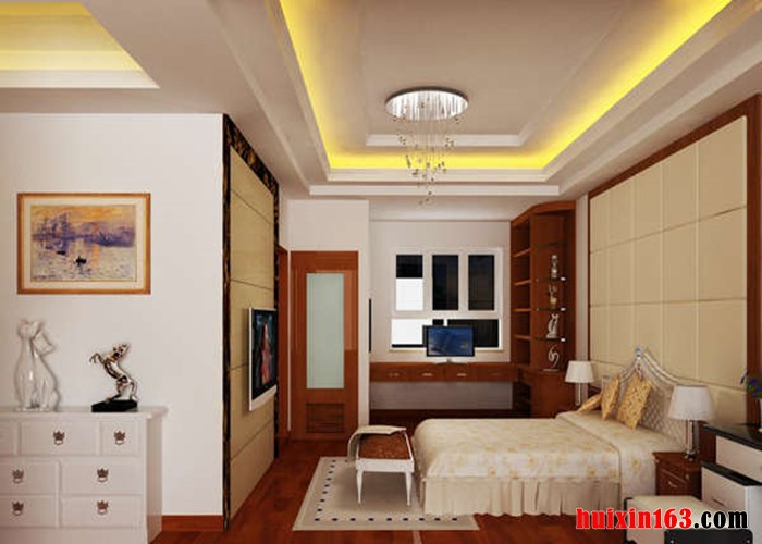 卧室主旨色彩:色彩应以统一、和谐、淡雅为宜,对局部的原色搭配应慎重,稳重的色调较受欢迎,本例主要运用到木材质,张显简朴大方之气。整个空间提取了传统古典家居韵味,又融入了现代生活符号,床上抱枕打破了空间的安静。充满中国韵味的剪纸使风格的体现的淋淋尽致。