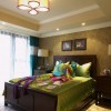 卧室平顶式的石膏板吊顶加上一盏富有吊灯,靓丽的色彩打造靓丽的空间,古典的风格中主要是以实木建材为主,墙面采用墙纸装饰,电视墙为饰面板装饰,空间效果给人的感觉就更加的唯美,整个房间显得优雅别致。