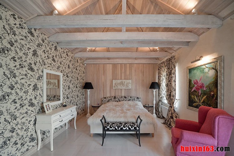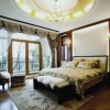 卧室平顶式的石膏板吊顶加上一盏富有吊灯,靓丽的色彩打造靓丽的空间,古典的风格中主要是以实木建材为主,墙面采用墙纸装饰,电视墙为饰面板装饰,空间效果给人的感觉就更加的唯美,整个房间显得优雅别致。