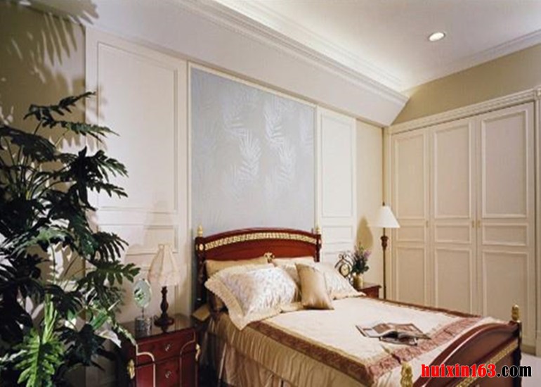 古典装修卧室在材料运用上多考虑中国人的居家习惯与需要,大量实木地板、布艺材料、壁纸、地毯,舒适、生活化。顶面处理简洁,人性化。灯光采用点照明,主灯少,以台灯、落地灯为主,在顶部做些补光,照射画面图片,达到比较立体的照明效果。