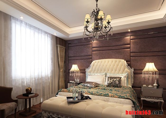 卧室家具的整体格调,极好地诠释出内敛不俗的品味。 主卧室把风格标志性纹样壁纸作为背景墙装饰,床和床头柜就要相对稳重一些,以此来互为补充,整个空间更加出彩。吊顶的装饰就是石膏板,在石膏板的上面吊了一个古典的灯,增加了房间内的高贵感。