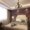 卧室家具的整体格调,极好地诠释出内敛不俗的品味。 主卧室把风格标志性纹样壁纸作为背景墙装饰,床和床头柜就要相对稳重一些,以此来互为补充,整个空间更加出彩。吊顶的装饰就是石膏板,在石膏板的上面吊了一个古典的灯,增加了房间内的高贵感。