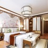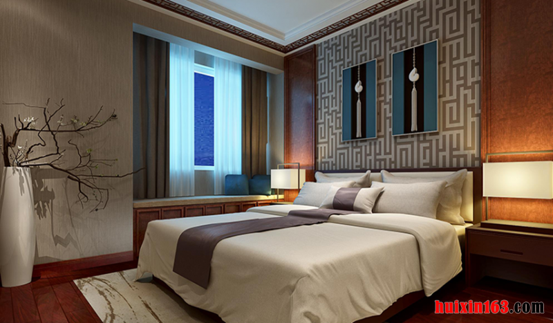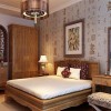 卧室家具是运用了清式的红木家具,顶面采用了木线、角花跟木花格作为装饰。直线装饰在空间的使用,不仅反映出现代人对追求简单生活的居住要求,更迎合了古典家具追求内敛、质朴的设计风格,使整套设计更加实用、更富传统韵味,散发出一种浓郁的古典气息。