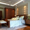 卧室顶面大面积以白色衬托,墙面大面积贴壁纸,顶面的装饰木线贯穿始终,使整个空间一瞬间变得典雅高贵。把整体设计的理念体现的淋漓尽致:刚柔并进,冷暖搭配,线条明快。