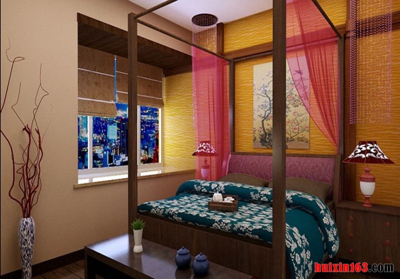 卧室家具是运用了清式的红木家具,顶面采用了木线、角花跟木花格作为装饰。直线装饰在空间的使用,不仅反映出现代人对追求简单生活的居住要求,更迎合了古典家具追求内敛、质朴的设计风格,使整套设计更加实用、更富传统韵味,散发出一种浓郁的古典气息。