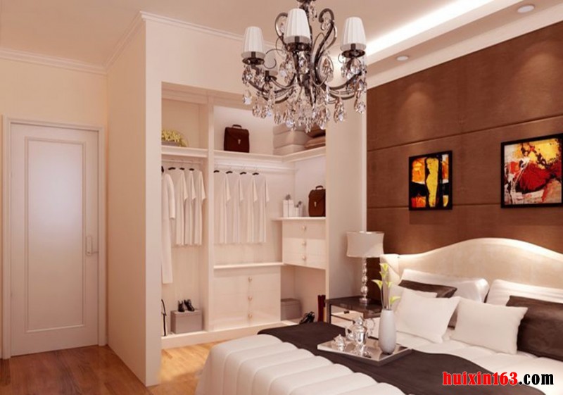 卧室顶面大面积以白色衬托,墙面大面积贴壁纸,顶面的装饰木线贯穿始终,使整个空间一瞬间变得典雅高贵。把整体设计的理念体现的淋漓尽致:刚柔并进,冷暖搭配,线条明快。