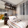卧室顶面大面积以白色衬托,墙面大面积贴壁纸,顶面的装饰木线贯穿始终,使整个空间一瞬间变得典雅高贵。把整体设计的理念体现的淋漓尽致:刚柔并进,冷暖搭配,线条明快。