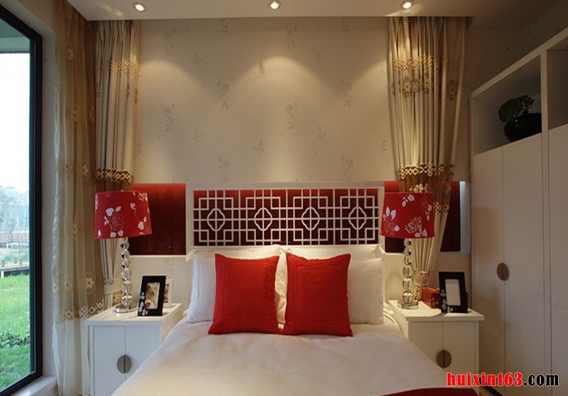 卧室家具是运用了清式的红木家具,顶面采用了木线、角花跟木花格作为装饰。直线装饰在空间的使用,不仅反映出现代人对追求简单生活的居住要求,更迎合了古典家具追求内敛、质朴的设计风格,使整套设计更加实用、更富传统韵味,散发出一种浓郁的古典气息。