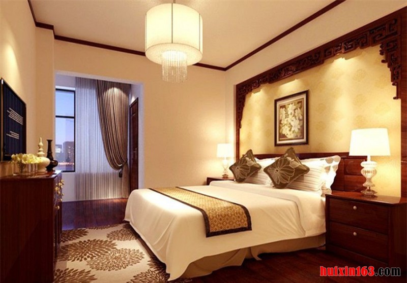 卧室简练到极致的建筑元素,将中国气息的人文情怀纳入园内。以古典风格设计,使用原木、石材、风景画、古典线条等勾勒古典古韵的人文雅居。以简约的手笔,融合东方的审美传统,西方现代的精神。呈现了贯穿中西,融古汇今的一个作品,演绎了富有大宅气派的品味家居生活。