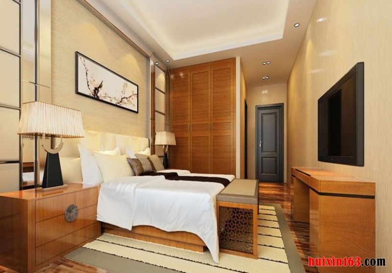 卧室简练到极致的建筑元素,将中国气息的人文情怀纳入园内。以古典风格设计,使用原木、石材、风景画、古典线条等勾勒古典古韵的人文雅居。以简约的手笔,融合东方的审美传统,西方现代的精神。呈现了贯穿中西,融古汇今的一个作品,演绎了富有大宅气派的品味家居生活。