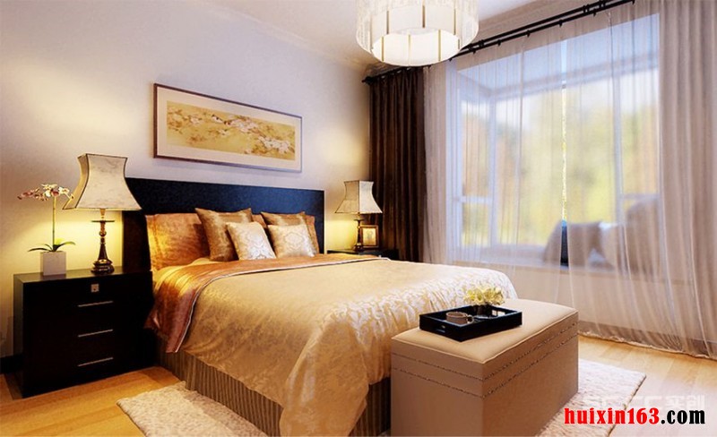 卧室造型上,采用的是硬朗的直线条,并以对称的方式呈现,表现了端庄大气的视觉效果,在色彩上,以原木色、浅棕色为基础色调,凸显了温馨静雅的中式家居特点,仿古地砖和实木复合地板等,将古典元素与现代材质融为一体,在家具配置上,选用了稳重大方的一品榆系列家具,端庄的造型,精致的细节雕刻,演绎了丰富的艺术灵感和独特的人文内涵。