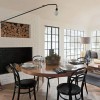 本套餐厅的整体装饰效果可以带给人们一种大气感,石膏板吊顶采用了平顶式的设计,可以将中间的金属吊灯衬托的更加精美,同时也富有一定的时尚气息,更是将下方的黑色实木餐桌照射的更加高贵、典雅。